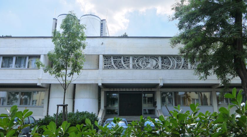 On 29 January 1970 Johann Pleyer was sent a letter from the Oblates Provincial Procuration outlining changes they wanted the architect to make in the planned building for a new mission at 169 Auhofstrasse — for instance, Point 8: no flat roof. In this respect the Oblati did not have their way, as Pleyer designed an elongated, two-storey building with a flat roof (built 1970–1972). Two solid concrete pillars encase the stairwell and the lift (also stipulated in the abovementioned letter) and pierce the building vertically. Above the entrance the otherwise clean ribbon glazing was given a delicate pattern that is not marked in on the submitted plans. The Percent for Art programme was a key factor for the architect in this project. The building was recently sold to a non-profit housing association, the last Oblat having moved out.