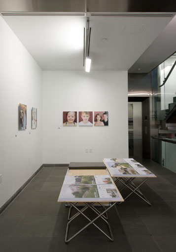 Die sehr privaten Porträts sind prominent in rhythmischer Abfolge an den Wänden platziert. Die dazugehörigen Hausdokumentationen mit Planmaterialien, Kurztexten und Fotos präsentieren sich horizontal in Form von Plakaten zur freien Entnahme und Verbreitung. Transportkisten der aus Österreich angereisten Ausstellung werden als Sitzgelegenheiten genutzt und ergänzen die Installation. Wie Reisekoffer thematisieren sie die Transformation der Menschen aus ihrem privaten Umfeld in den öffentlichen Zusammenhang einer Ausstellung, und der Bauten in einen neuen Kontext.